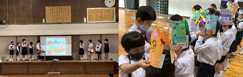 毎週木曜日、5・6時間目にある4・5・6 年生の「Nakayoshi」の時間の活動だけでなく、6年生が入学時の1年生のお世話をする<パートナー制度>、低・高学年や全校での