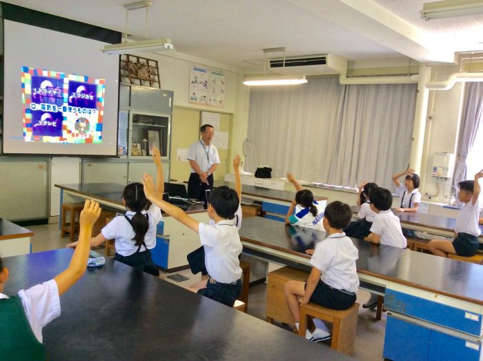 今日は関西電気保安協会の方々をゲストティーチャーにお招きして、電気の働きについてさらに深く勉強をしました。