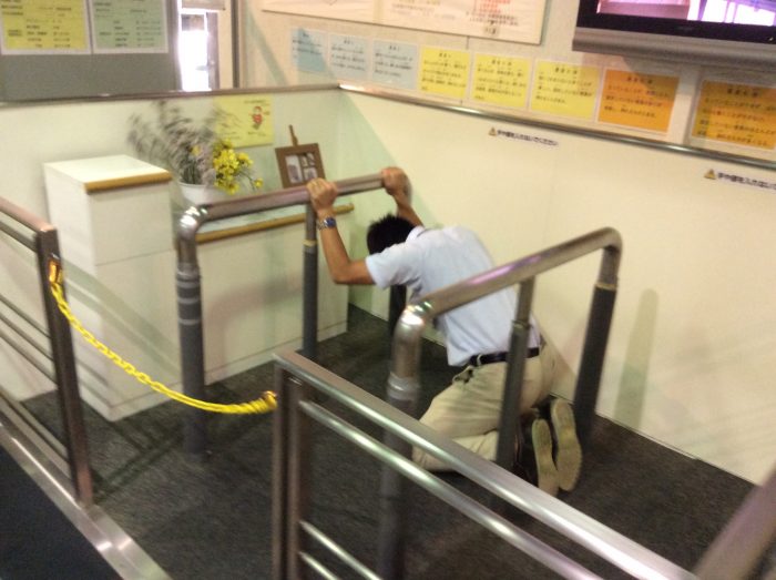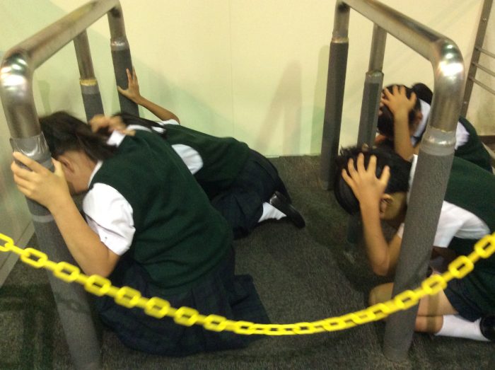 先生は震度7の体験もしました。必死につかまっていないと、転がって行きそうな強い揺れでしたね。