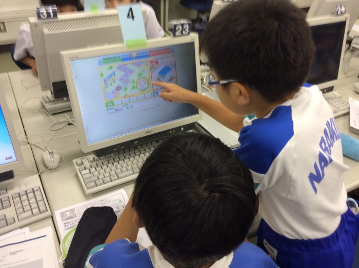 2人1組で自動車会社の社長となり、スゴロクをしながら、ゴールを目指します。利益が一番多いペアが1位となりますが、ただお金を稼ぐだけでなく、環境のことも考えていかないといけません。