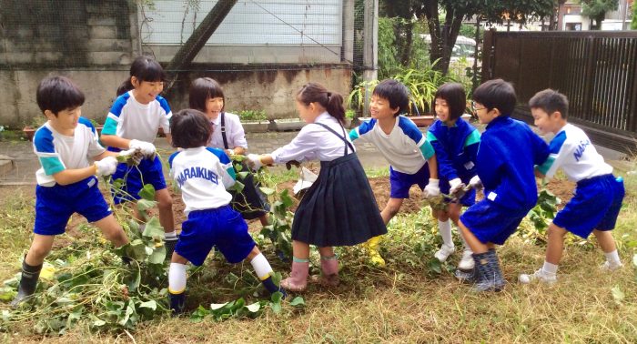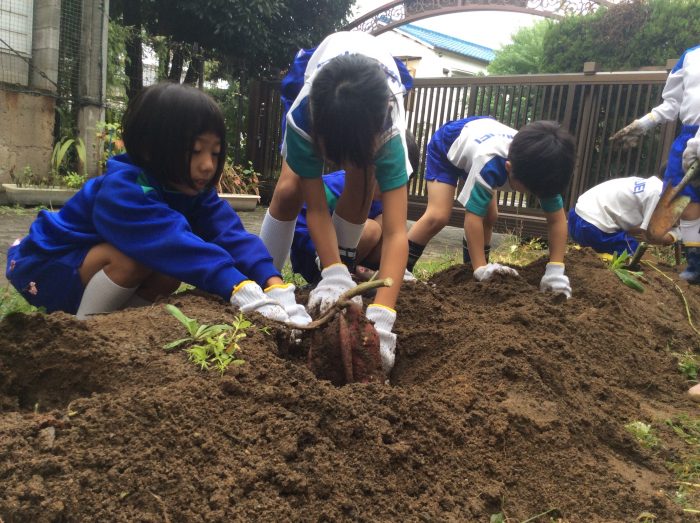「芋がつながってる!どこまで掘ればいいんだろう?」