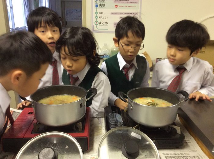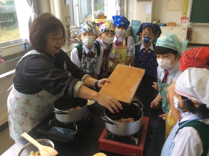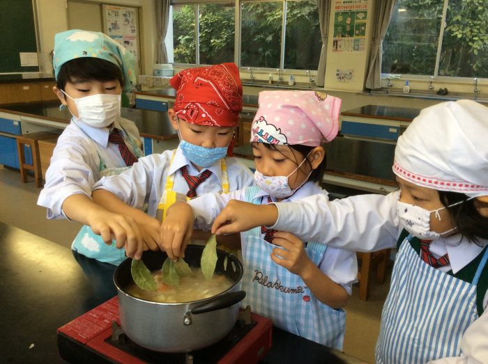 「肉の味が違う!」「月桂樹を入れないで煮込んだ方が辛い。」微妙な違いがわかり、表現できるみんなに驚きました。
