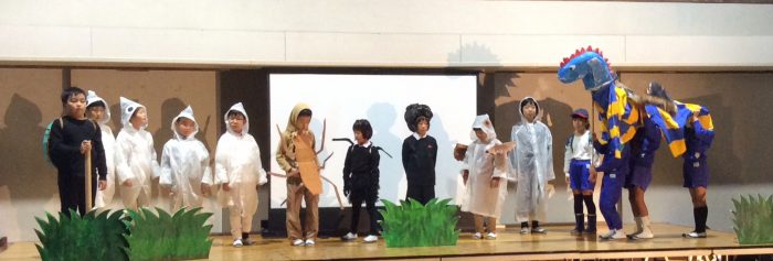 それぞれの学年の学びの中で、みんなに伝えたいことを一生懸命演じました。全校が1つになった素晴らしい発表でした。みんな本当によく頑張りました。