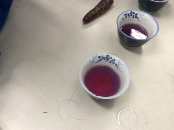 紫色の人参の煮汁はこんなにきれいな紫色になりました。