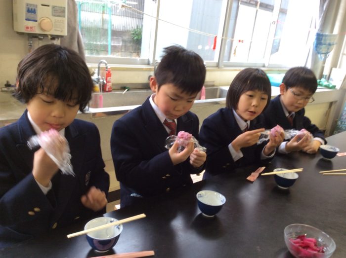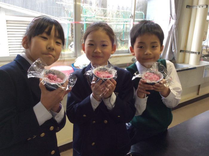 一緒に紅くるりを塩もみしてお漬物も作りました。甘いめの炊き込みご飯によく合ったようです。「お雛祭りにぴったりだね。」ステキな大根を紹介してくれてありがとう。