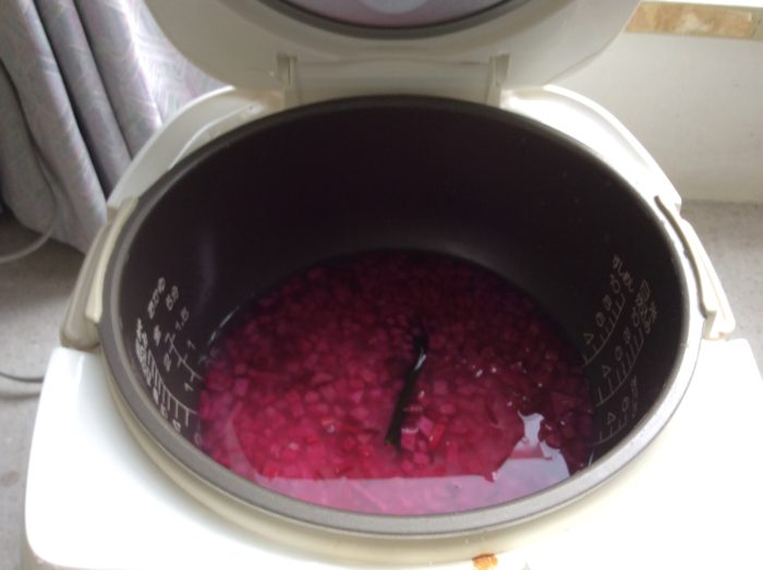 もうこの時点で水がピンク色になってきて「きれい!」「早く食べたい」と言ってました。