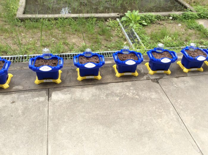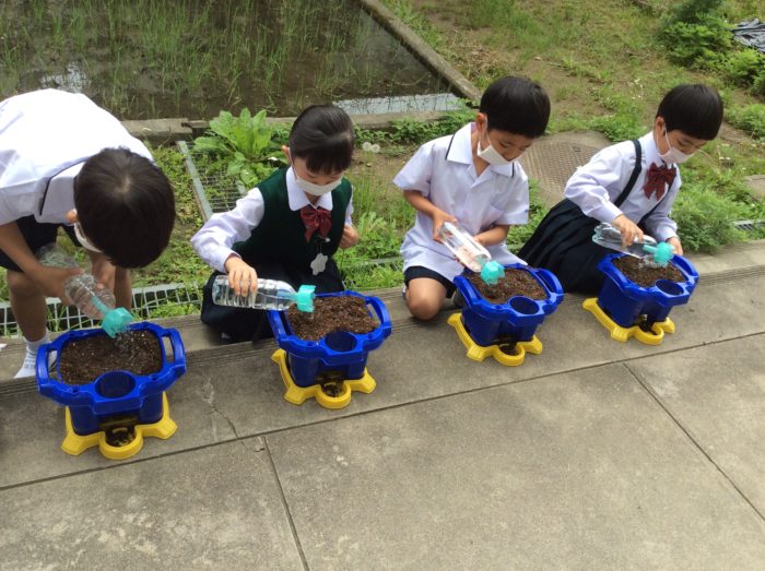 水をまいて落ち着いた土に指で穴をあけたり、上手にできていました。