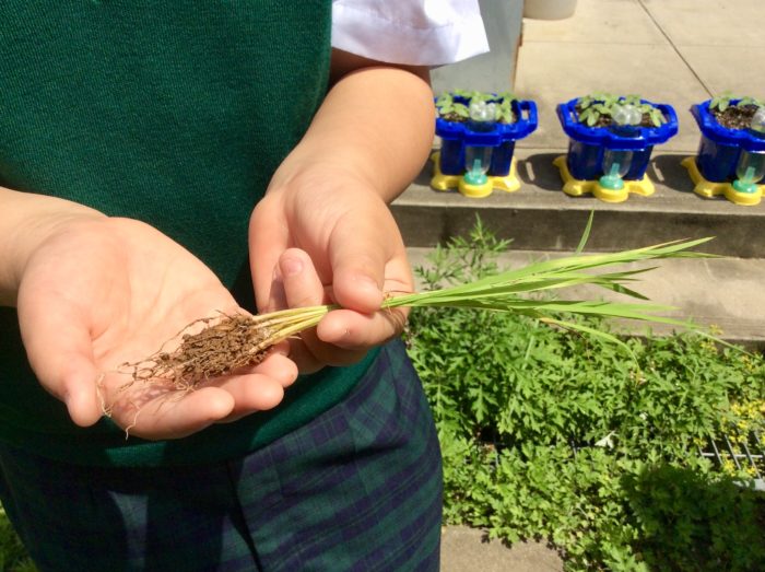 では、実際に子ども達に体験してもらいましょう!苗は5本程度をセットに植えます。