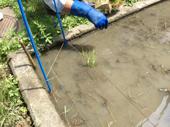 最後に雑草が生えてこない様に除草剤を撒きました。これから稲がすくすく元気に育つと良いですね。