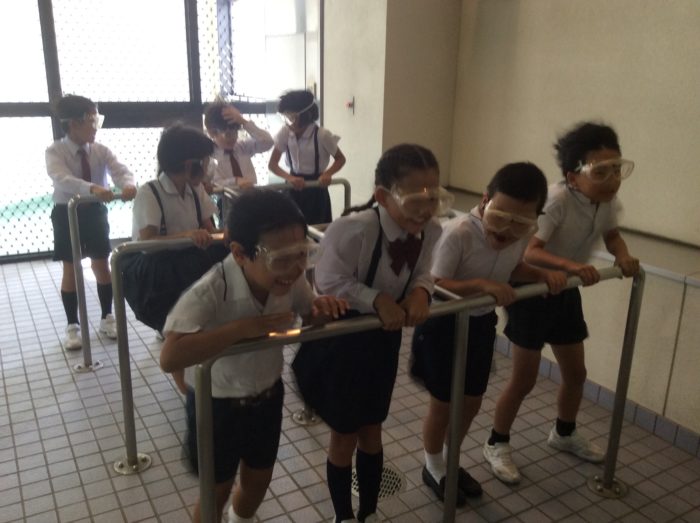 消毒をして入館後、3グループに分かれて体験学習に向かいました。