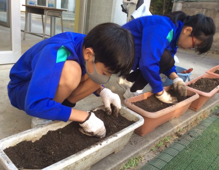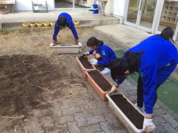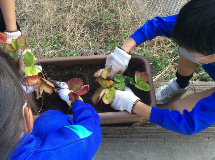行事の都合で、少し遅くなりましたが、春に向けてチューリップの球根とイチゴの苗を植えました。