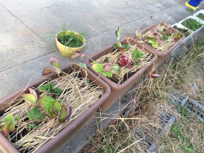 日当たりの良いところにおきました。イチゴの白くてかわいい花を早くみたいな。