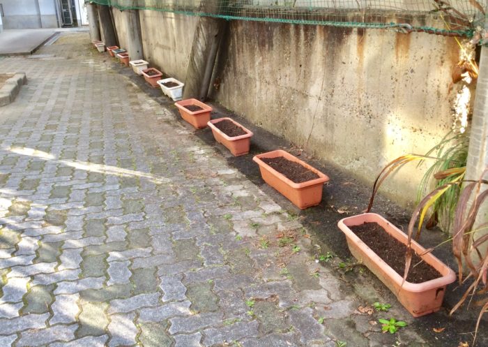 通用門を入ったところに並べました。60個の球根が植えられてます。