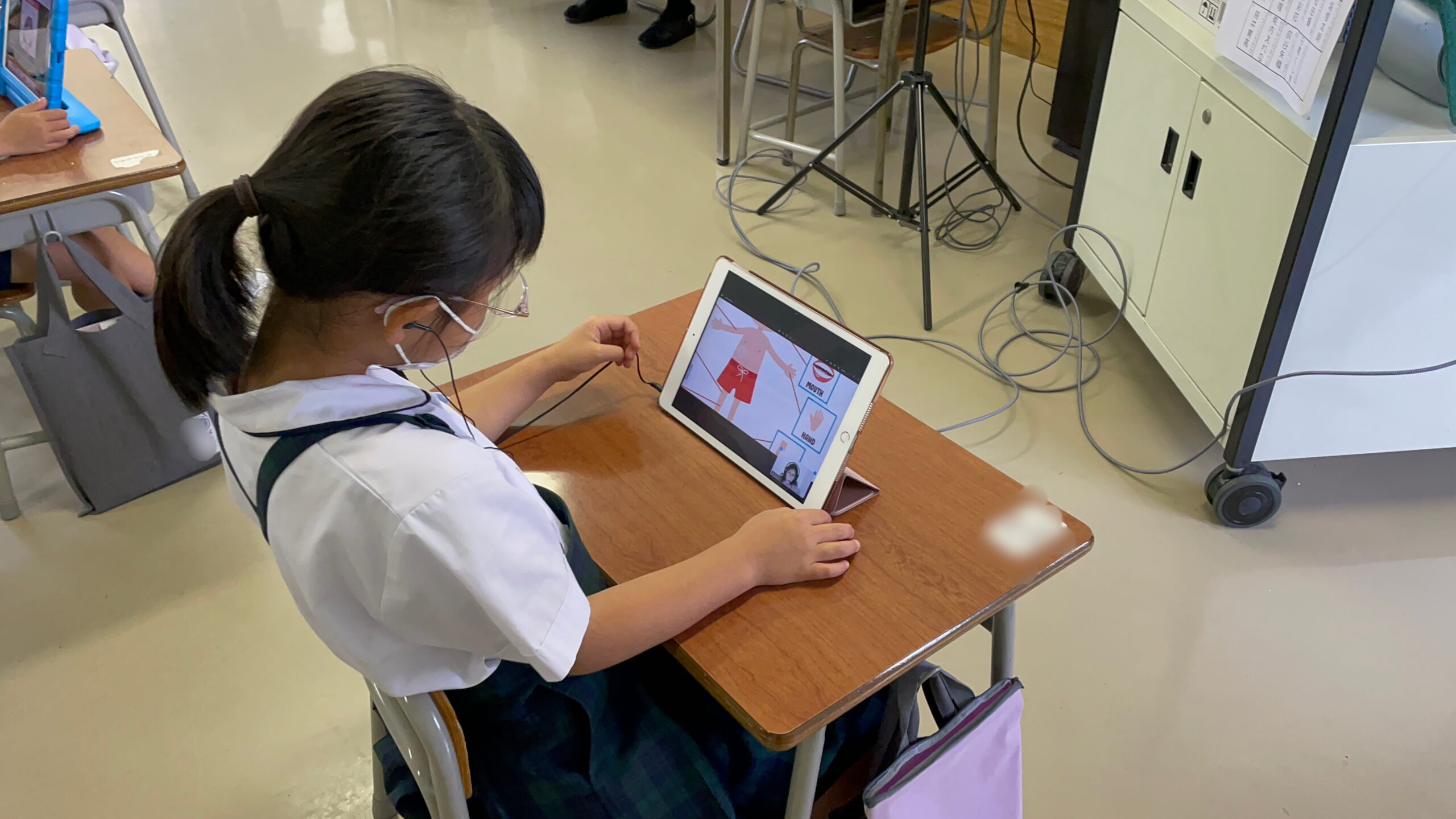 1・2年生は、体の部位の英語での表し方と、ハロウィンの慣用句をみんなで発声・復習しました。