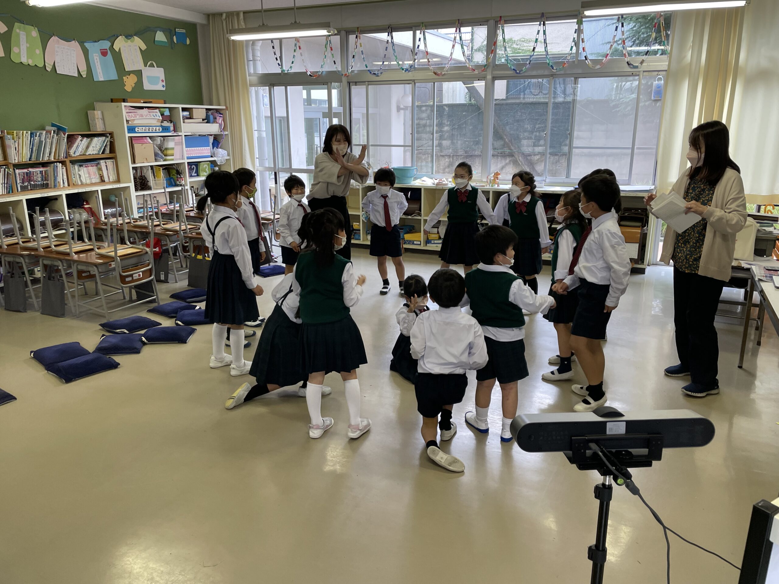 最初は先生と子ども達でやり方をゆっくり教えています。
