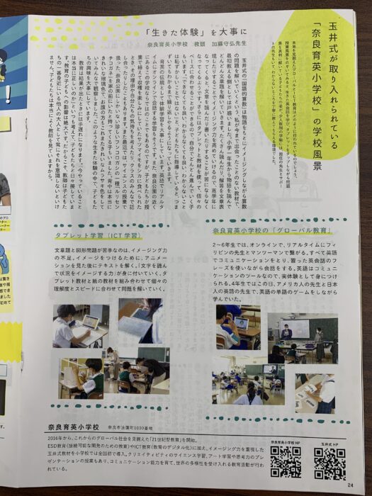 また、加藤教頭先生の奈良育英小学校の特色の紹介記事も、具体的な事例と共に掲載されております。