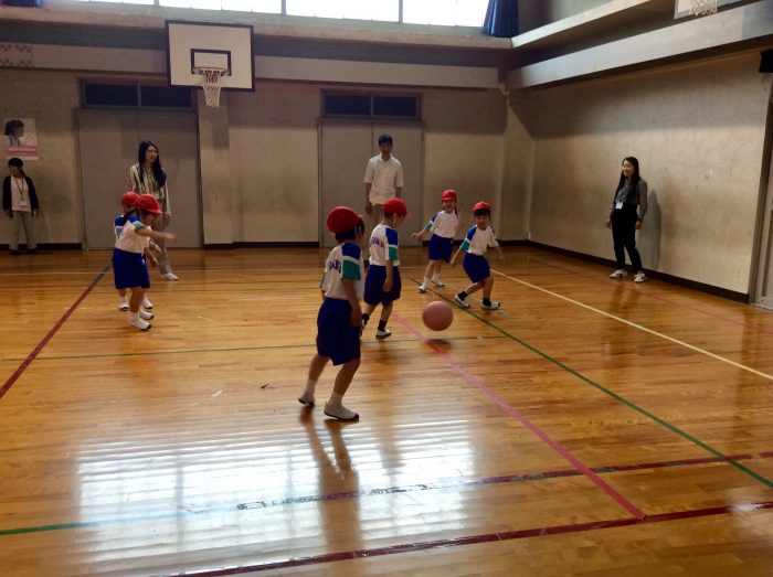 中学年、高学年は中高の体育館で行ないました。高学年はボールが速く迫力満点でした。
