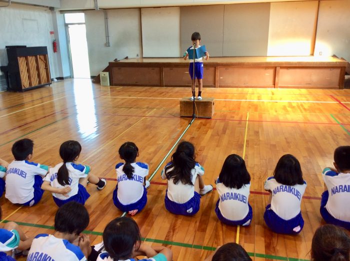 夏休みの時間を利用して、子ども達はたくさんの本と出合いました。その思い出を感想文に書きまとめてくれた中で、各学級から代表者1名ずつ発表してくれました。