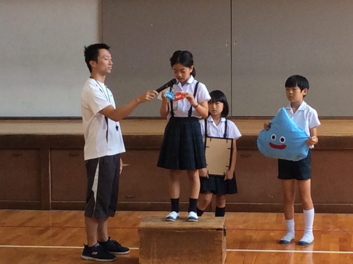 高学年集会は夏休みの作品発表となりました。
