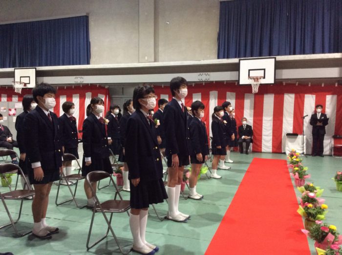 第59回卒業式。新型コロナウイルス対策のため、卒業生・卒業生保護者・教職員のみで行われました。