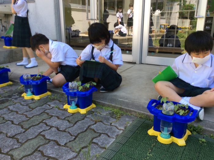 そのあと今週から双葉を出してくれたあさがおの観察です。