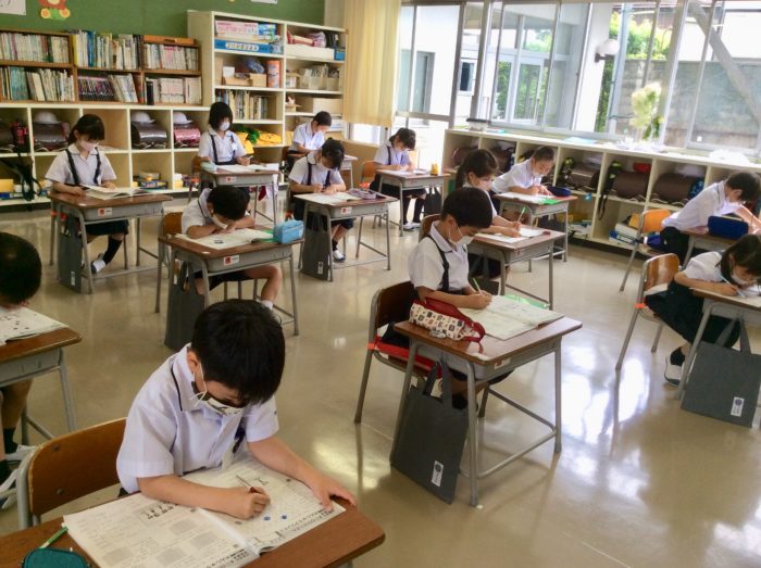 玉井式算数の学習も始まりました。最初は一問一問先生に問題を読んでもらって進めてました。