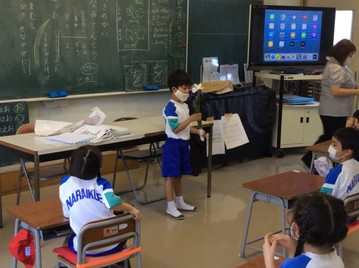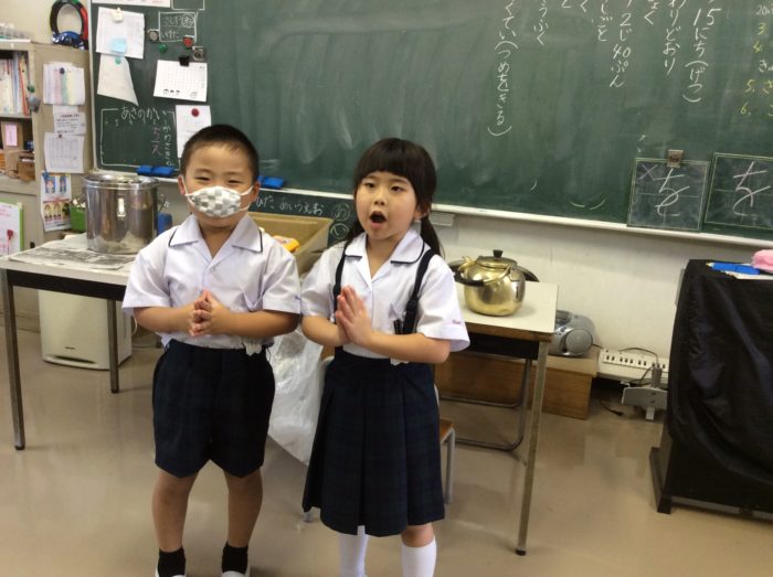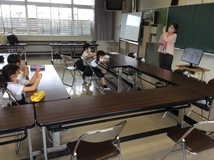 ECC英語です。先生の英語を一生懸命にまねっ子します。