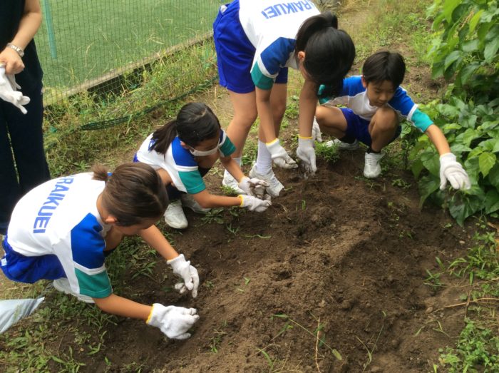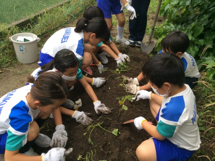 スライム作りの前には畑作業もがんばりました。