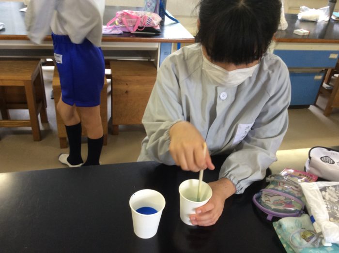 好きな色の色水を作り、ホウ砂をお湯にとかします。