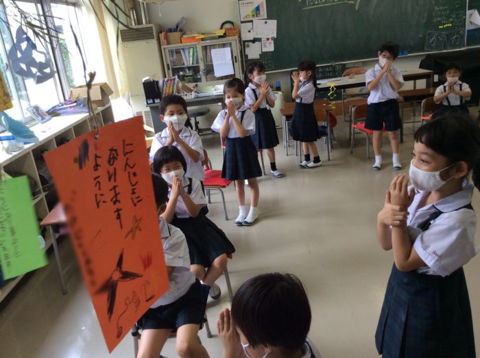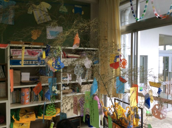 2020.07/08 育英っ子ブログ 七夕さま ♪ささのは さらさら〜♪ 1年生で七夕祭りをしました。 願い事の発表です。 「いつかたまごを温めてひよこがうまれますように」 なんてかわいい願い事でしょう。 こんなに賑やかな笹になりました。空からきっと見つけてくれるでしょう。 フルーツバスケットゲームもしました。 バタバタキャーキャー大騒ぎ。 七夕祭り楽しかったね。 七夕についての話を知り、「今日織姫様と彦星様会えるかなあ。」と 子供たち。 きっと会えるよね。 次の記事へ 一覧に戻る 前の記事へ