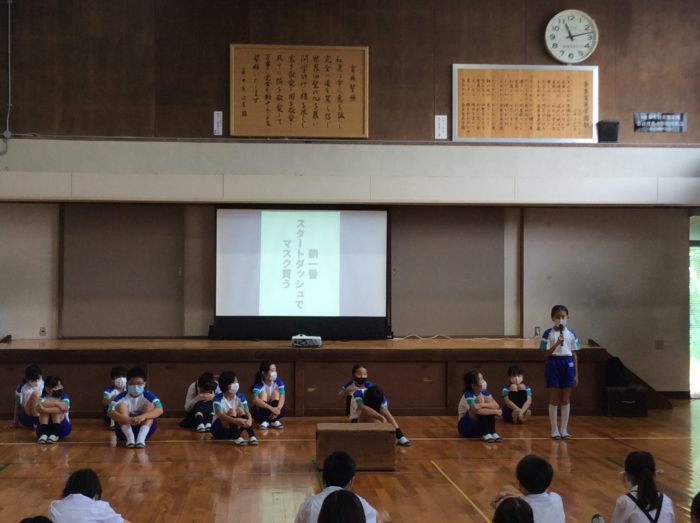 もう今学期はできないんじゃないかと思われていた集会ですが、クーラーのついた体育館で、三密に気をつけながら実施することができました。