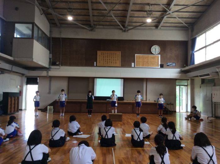今日は1学期の学習の成果を発表する、よい高学年集会ができました。