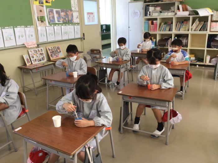 洗濯のりと混ぜて、割りばしでぐるぐる…まぜる!