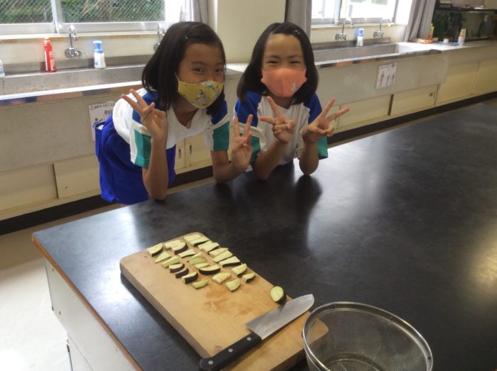 コロナ感染対策のため、調理実習はできませんが、調理には炒める、焼く、茹でる、煮る、蒸すなど素材によって色々使い分ける事を学びました。