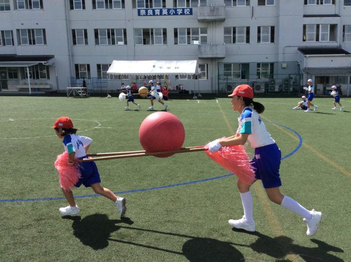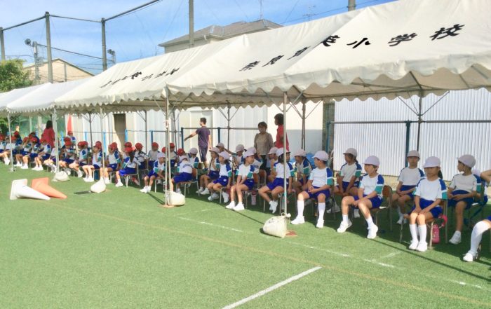 小学校での運動会は初めての1年生は、パートナーとの競技で大活躍!