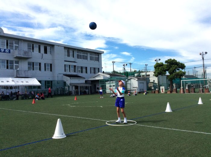 2年生は「ボールは友だち」1人ずつ自分のボールを持って入場。