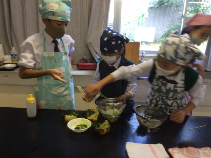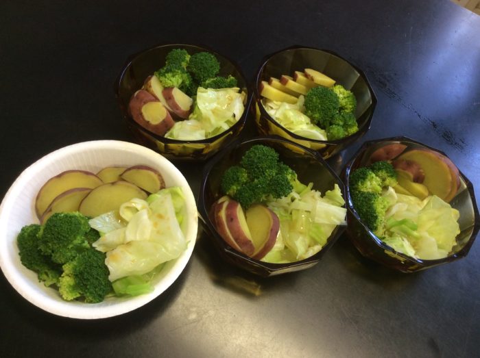 ゆで野菜のサラダということで、グループごとに自分達で材料を