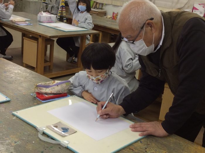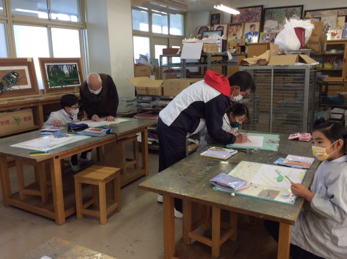 橋中先生をお迎えして、昆虫画を描きました。毎年お越しいただき、2・4・6年生に教えていただいています。今日の午後は2年生。