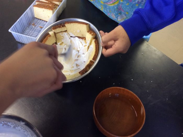 次に生クリームを塗ります。この生クリームが接着剤の役目をします。