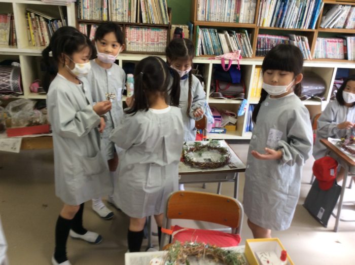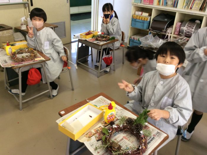 アートの時間に、リースも作りました。