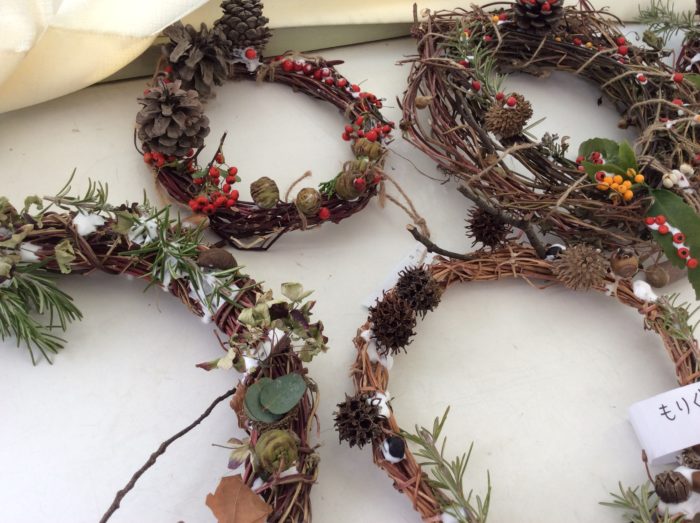 それぞれにおしゃれなリースが出来上がりました。