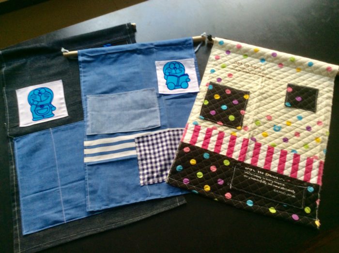 人気のドラえもんの柄をポケットに使ったり、布の裏表で色に濃淡を