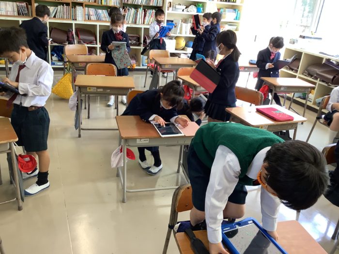 1、2年生は、散歩の歌を歌ったり、日本の植物を見せたりしました。