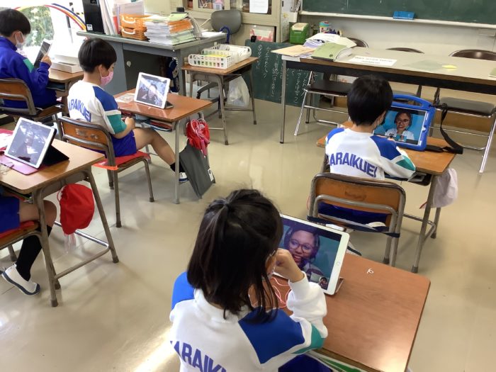 スリアリア校からは、普段の学校での様子、周りの自然などを映像に撮ってくださり、それを見せていただきました。子どもたちは日本との違いを感じていました。
