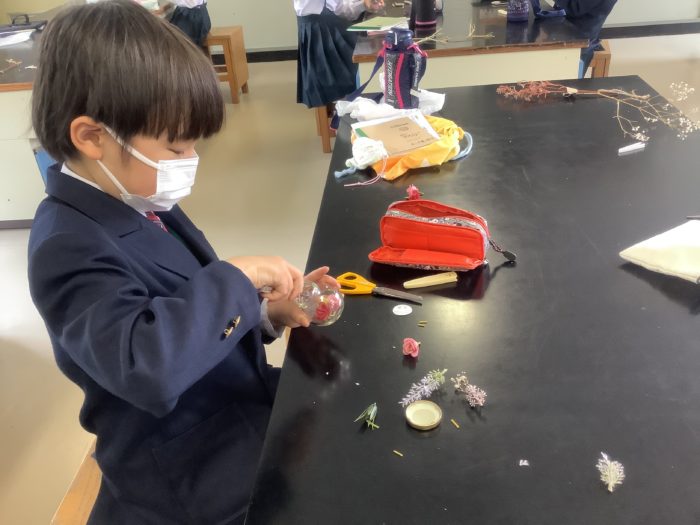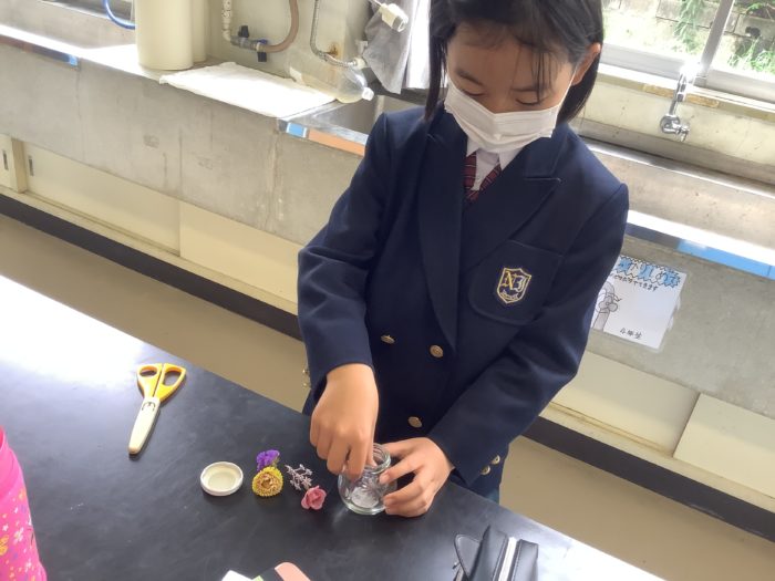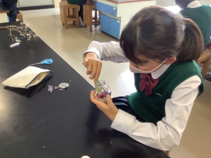 今日はみんなの第一希望だった「ハーバリウム」を作りました。