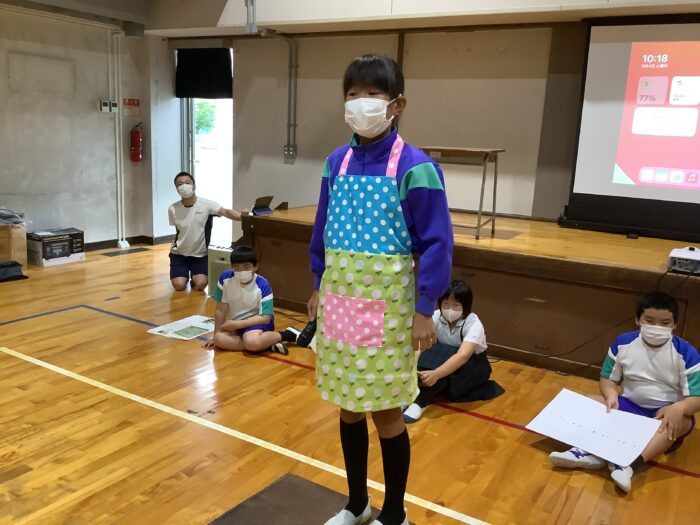 5年生の発表は、水溶液の実験やエプロン作りなど学習に関わるものが多くありました。コロナの終息を願ったアマビエの絵もありました。