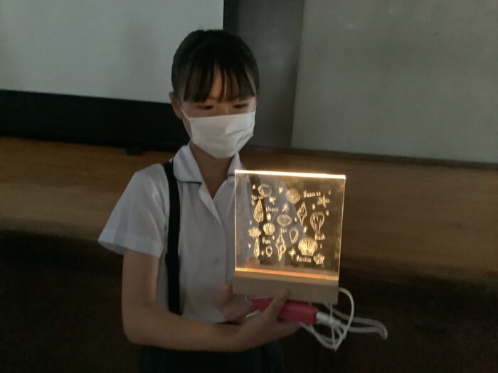 6年生の発表は、ランプやモビールなどバラエティーに富んだ作品が揃いました。小学生として最後の夏休みの作品となりました。