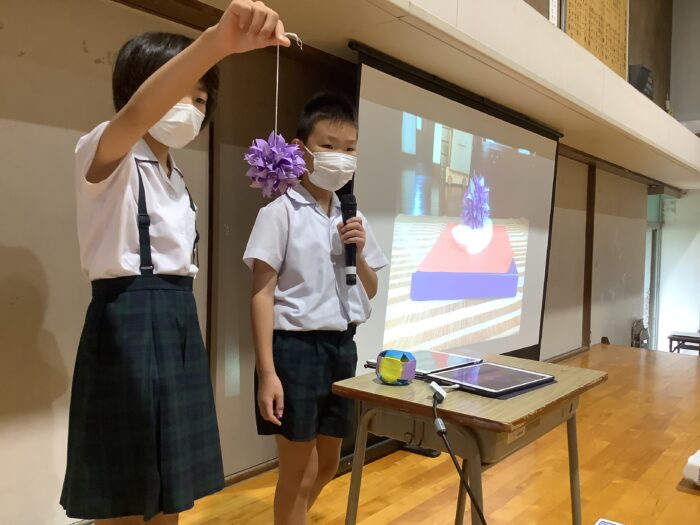 4年生の発表は、「氷室神社とかき氷」「光の実験」など長い休みの間にしっかりと取り組んだ自由研究が多かったです。その他にも、複雑な折り紙や小物入れなどの工作もありました。