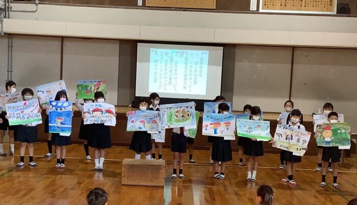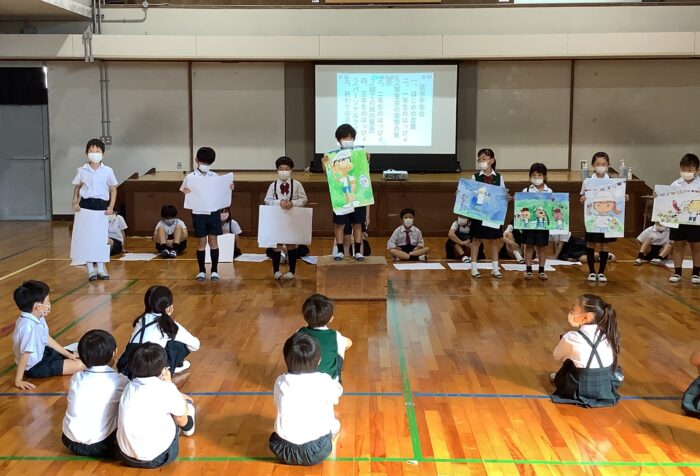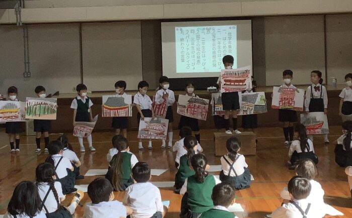 はじめは、一年生です。写生会の絵の感想を言いました。