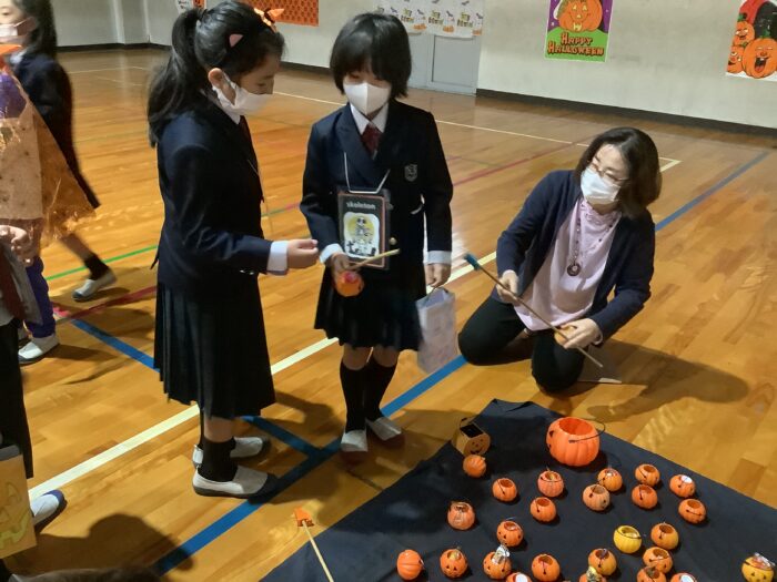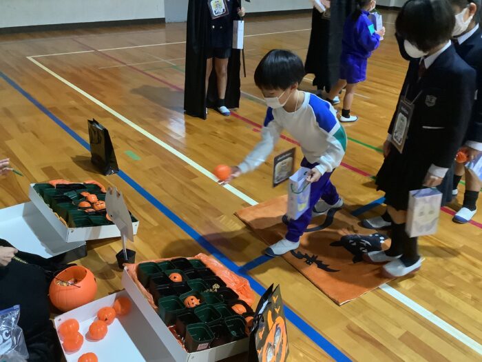 まずはハロウィンジャンケンをしました。勝った人からステッカーをもらいます。